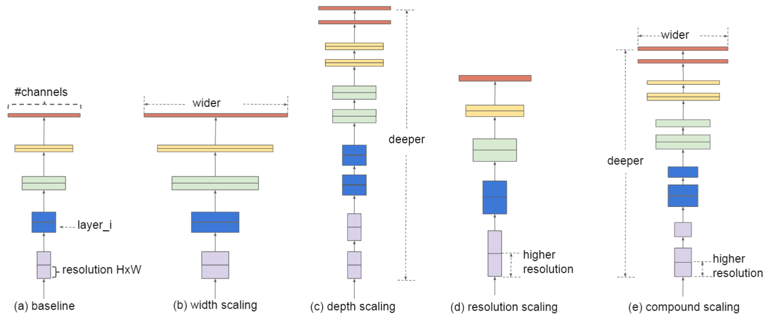 为什么在这几个维度上进行放大可以提高准确率呢?因为增加了图片的分辨率或则增加了网络的宽度,网络就能够捕获到更过细节的特征,而增加网络的深度能够捕获到更丰富和更复杂的特征。